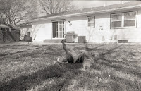 The skate park tweakers under Kellogg normally clear out by 7:00am or so, but this guy kept the party going well into the afternoon having discussions with China, finding a good spot to light up, and dancing/rapping (?). Oblivious to anything going on around him, I decided to snag a photo of me bunny hopping over him to flat when he decided to set up shop in the bowl to fight the wind. Sadly some "hero" mom called the cops and he got hauled away before he came down and I could thank him for the hours of entertainment.